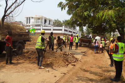 Travaux de remplacement des dallettes détruits tout près du Petit Séminaire de Bujumbura sur la RN3