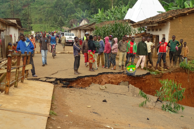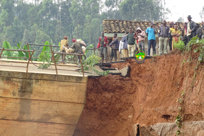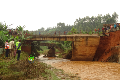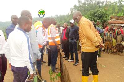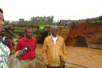 Descente du Ministre des Infrastructures, de l'Equipement et des Logements Sociaux, certains cadres de l'Agence Routière du Burundi et l'administration locale en date du 4/3/2021 sur la RN1 précisément sur le pont Kayave reliant les communes Kayanza et Busiga, pont effondré suite aux fortes pluies.