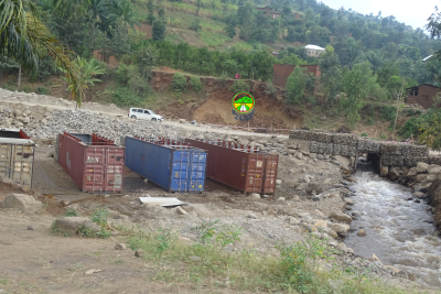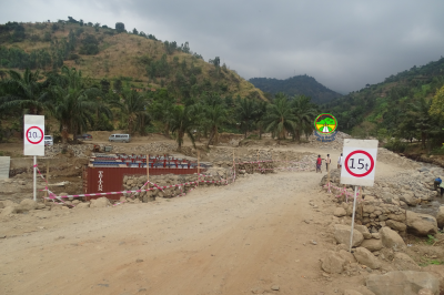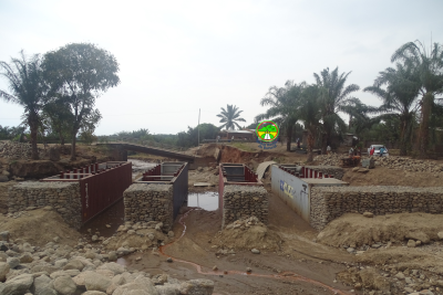 Travaux en cours sur la déviation du pont sur la rivière Kirasa.