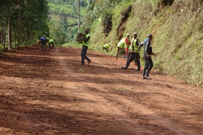 Après l'entretien, le responsable de chantier et son technicien en compagnie de l'Ingénieur communal se sont rendus sur terrain sur la piste RP107 de 22km reliant les commune Mugwi et Bukinanyana de la Province Cibitoke, avec élargissement d'un tronçon de 1,4Km de la localité de Mirombero à Rwesero. Le reprofilage et le débroussaillage tels sont des travaux qui sont en cours.