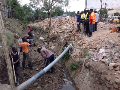 Début des travaux de construction du collecteur et stabilisation par gabionnage