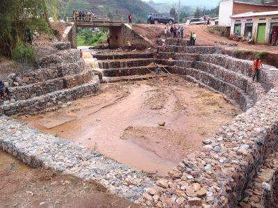 2. Travaux de stabilisation par gabionnage du Pont Kigezi sur la RN7 au PK20 de la commune Nyabiraba de la Province Bujumbura, ces travaux sont à 95%, seuls restent les travaux de construction du caniveau maçonné et les remblais derrière les gabions.