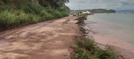 précisément au niveau de Mvugo, en attendant l'intervention pour le rétablissement de la chaussée, les poids lourds et les camions sont interdits d'y passer.