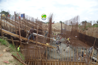 Travaux de reconstruction de l'ouvrage hydraulique sur la rivière Murago de la RN9:le bétonnage du radier en cours.