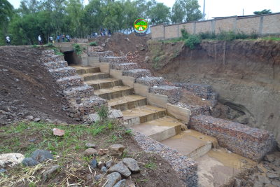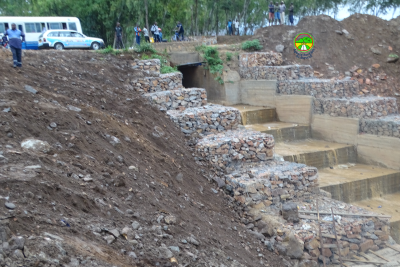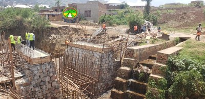 Travaux de construction à un rythme acceleré du pont sur la rivière Nyabagere reliant les quartiers Nyabagere et Gasenyi