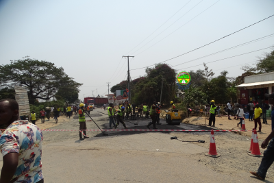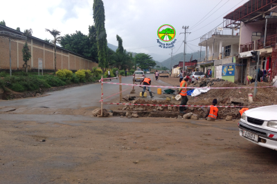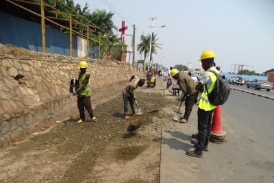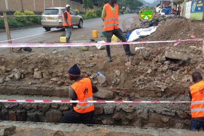 Travaux de remplacement des dallettes détruits tout près du Petit Séminaire de Bujumbura sur la RN3
