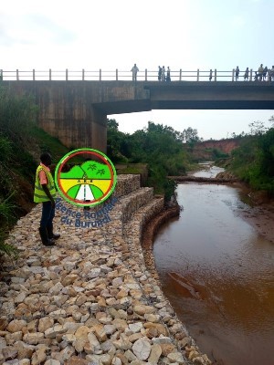 Travaux de protection et de stabilisation par gabionnage du pont Rukoziri de la commune Makamba.