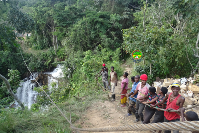 Construction en cours des Ponts Piétonniers suspendu (PPS) sur les chutes Karera en commune Rutana reliant les collines Shanga et Rugunga.