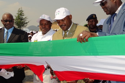 Coupure du ruban symbolique marquant l'inauguration de la RN13 Phase I et II  par S.E M. le Président de la République du Burundi