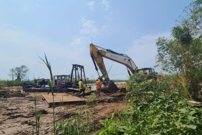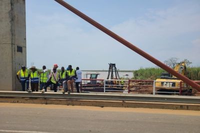 et de certains cadres de l'Agence Routière du Burundi, a effectué une visite sur les travaux d'urgence de dragage du Pont de la Concorde sur la rivière Rusizi. Travaux en cours d'exécution par la société Métalusa.